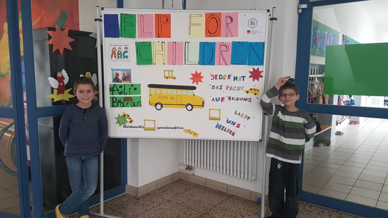Außerdem haben wir eine Spendenaktion für Baran und Ali gestartet. Die ganze Schule macht mit. Wir haben sogar eine Stellwand gestaltet. Uns ist das Projekt sehr wichtig.